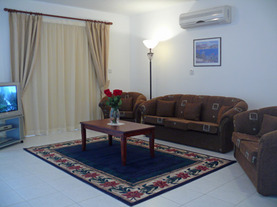 This spacious apartment combines all the modern conveniences you could require with comfortable and attractive furnishing throughout. The open-plan living room comprises a comfortable lounge seating 5 persons, a well-appointed kitchen and a dining area seating 6 persons. There is a television with a selection of satellite channels and DVD/CD player for your entertainment.